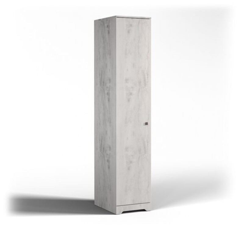 Детали шкафа, которые в эксплуатации подвержены механическим повреждениям, облицованы кромкой ПВХ толщиной 2 мм. Петли без доводчиков. При желании петли с доводчиками можно приобрести дополнительно и самостоятельно установить их. Задняя стенка изготовлена из ХДФ. В шкафу установлены три съемные и три несъемные полки из ДСП. При необходимости шкаф может быть собран как левосторонний, так и правосторонний. Шкаф установлен на стенках боковых с наконечниками.