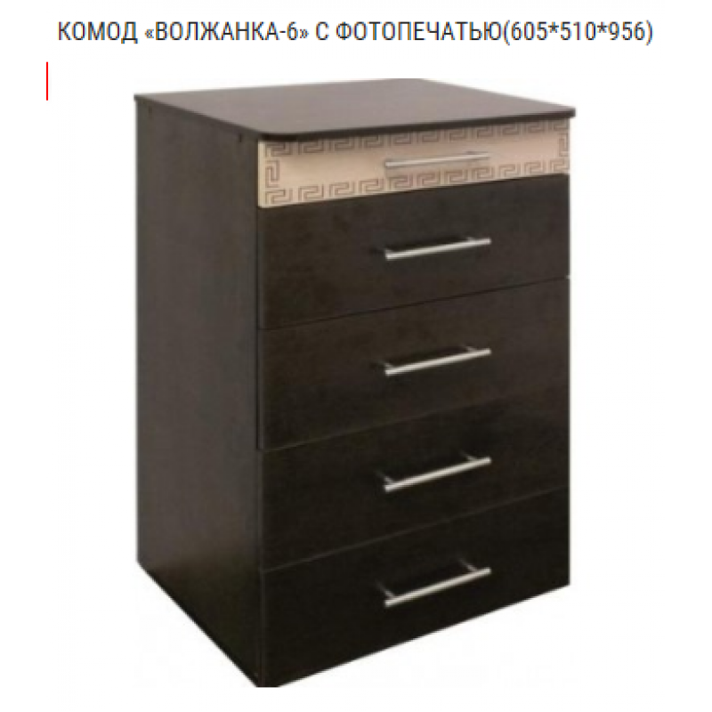 Высокий узкий комод оборудован четырьмя широкими и одним узким выдвижным ящиком для белья и личных вещей. В небольшой комнате будет незаменим для организации хранения вещей.Фасадную часть украшает оригинальная фотопечать